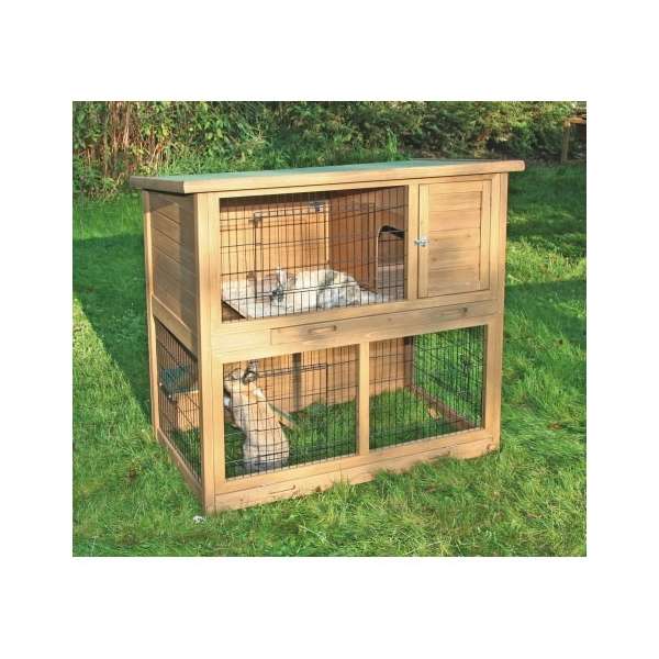 Das Nagerhaus aus hochwertiger Spießtanne kann variabel gestaltet werden und bietet so jedem Nager ein komfortables Zuhause: Im Handumdrehen wird aus dem zweistöckigen LA VITA DUO ein einstöckiger Stall mit praktischem Unterlaufgehege und direktem Zugang zu einer frischen Rasenfläche. Durch das Verschließen der Verbindung vom unteren in das obere Stockwerk können beide Etagen zudem getrennt voneinander verwendet werden. Eine praktische Kunststoffwanne erleichtert die hygienische Reinigung und bietet auch dem Tierhalter höchsten Komfort. Im oberen Stall erwartet die Nager ein gemütlicher Ruhebereich, der durch einen Durchschlupf erreicht wird – hier kann sich das Tier zurückziehen, wenn ihm danach ist. Im Nagerhaus LA VITA DUO fühlen sich Nager zuhause.