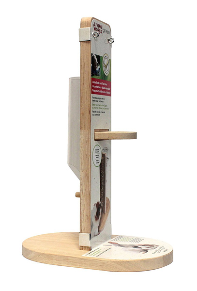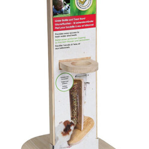 Der Ständer besteht aus umweltfreundlichem Gummibaumholz und bietet Ihrem Tier einen optimalen Zugang zu frischem Wasser und seinen Leckereien, egal ob im Käfig, im Terrarium oder auch im Freilauf. Es ist keine Befestigung an einem Käfiggitter mehr notwendig, die Trinkflasche wird einfach eingehangen und mit der Metallfeder, die bei den LivingWorld ECO+ Glastränken standardmäßig enthalten ist, oben am Ständer befestigt. Auf der Rückseite des Ständers kann eine handelsübliche Knabberstange bzw. Knabberstick einfach in eine Kunststoffvorrichtung hereingeschoben werden und steht Ihrem Tier dann zum Knabbern bereit. Der Ständer kann ohne Probleme von einem Heim ins andere gehoben werden oder beim Reinigen des Käfigs einfach beiseite gestellt werden. Anstelle der Knabberstange können Sie selbstverständlich auch andere längliche Leckereien verwenden, wie z.B. eine Karotte.