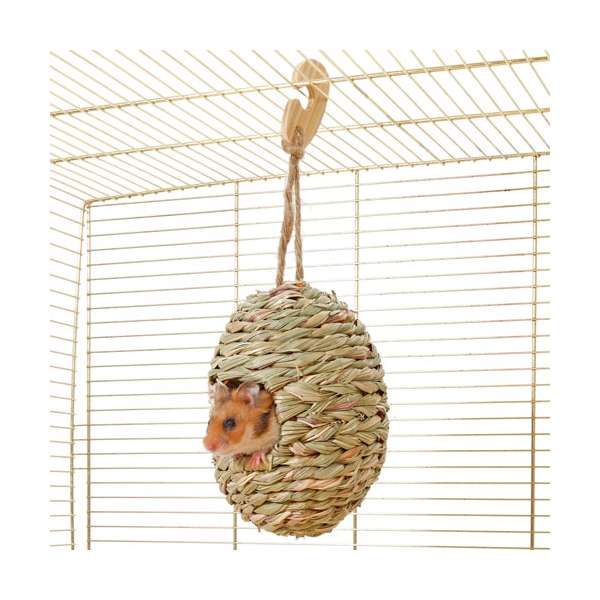 Dieses Grasnest in Form eines Iglus eignet sich ideal als Schlafhaus oder als Spielzeug zum Befüllen mit Heu, Kräutern oder anderen Snacks. Das Nest ist mit einem Seil und einem Haken aus Holz versehen, so dass es entweder ins Käfiggitter eingehangen oder einfach auf den Käfigboden gelegt werden kann. Das Grasnest ist 100 % natürlich und verdaulich.