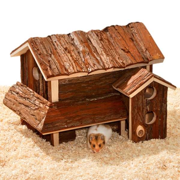 Das Spiel- und Schlafhaus Happy aus reinen Naturmaterialien bietet Ihrem Kleinnager viele Möglichkeiten zum Spielen, sich Zurückziehen und Ausruhen auf zwei Etagen. Das Dach ist auf einer Seite abnehmbar und die untere Etage ist komplett ohne Bodenplatte, um die Reinigung zu erleichtern und einen guten Zugriff zu Ihrem Tier zu ermöglichen. Extra breite Öffnungen bieten einen bequemen Zugang und sorgen für eine natürliche Luftzirkulation. Das Haus eignet sich für Kleinnager wie Hamster, Mäuse und ähnlich große Tiere.