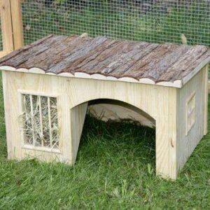 Die Heuraufe ist bei diesem Haus für Zwergkaninchen bereits integriert. Sie ist bequem von oben zu befüllen. So bleibt das Heu oder Grünfutter sauber und Ihre Tiere können sich jederzeit bedienen. Natürlich bietet dieses Haus auch genügend Unterschlupf und Schutz vor Wind und Sonne.