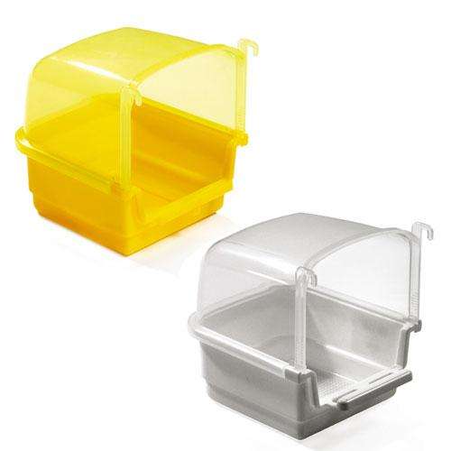 Diese Badewanne bietet dem Vogel die Gelegenheit zu baden, wann und wie oft er will. Es ist jedoch ratsam, die Badewanne nur zeitweise in den Käfig zu stellen, da sicherlich nach einiger Zeit auch Kot in der Wanne zu finden wäre.