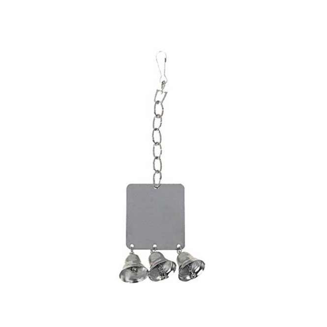 Runder Metallspiegel für Vögel zum Befestigen im Käfiggitter. Mit Glöckchen.