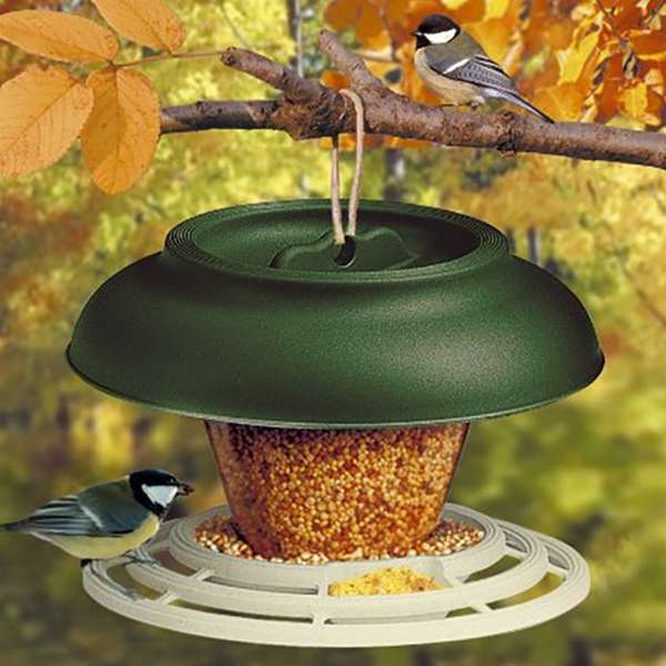 Formschönes Futterhaus aus stabilem, wetterfestem Kunststoff für Wild- und Volierenvögel. Drei Fächer erlauben die Fütterung mit unterschiedlichen Samen und Nüssen. An den Giebelseiten befinden sich Körbchen in denen man z. B. Obst anbieten kann. Im Sommer lassen sich die Unterteilungen entnehmen, so dass ein Vogelhaus entsteht, in dem man z. B. Gemüse oder Obst anbieten kann.